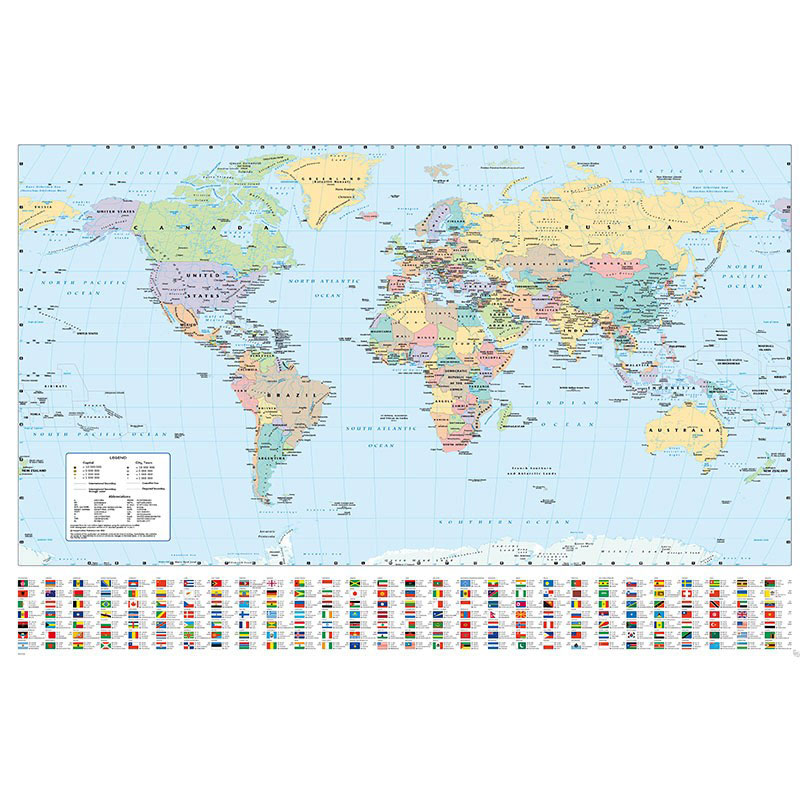 Odličan ukras za radnu, dječju ili dnevnu sobu! Odličan print karte svijeta upotpunjen je zastavama država tako da uz estetsku pruža i edukativnu funkciju.