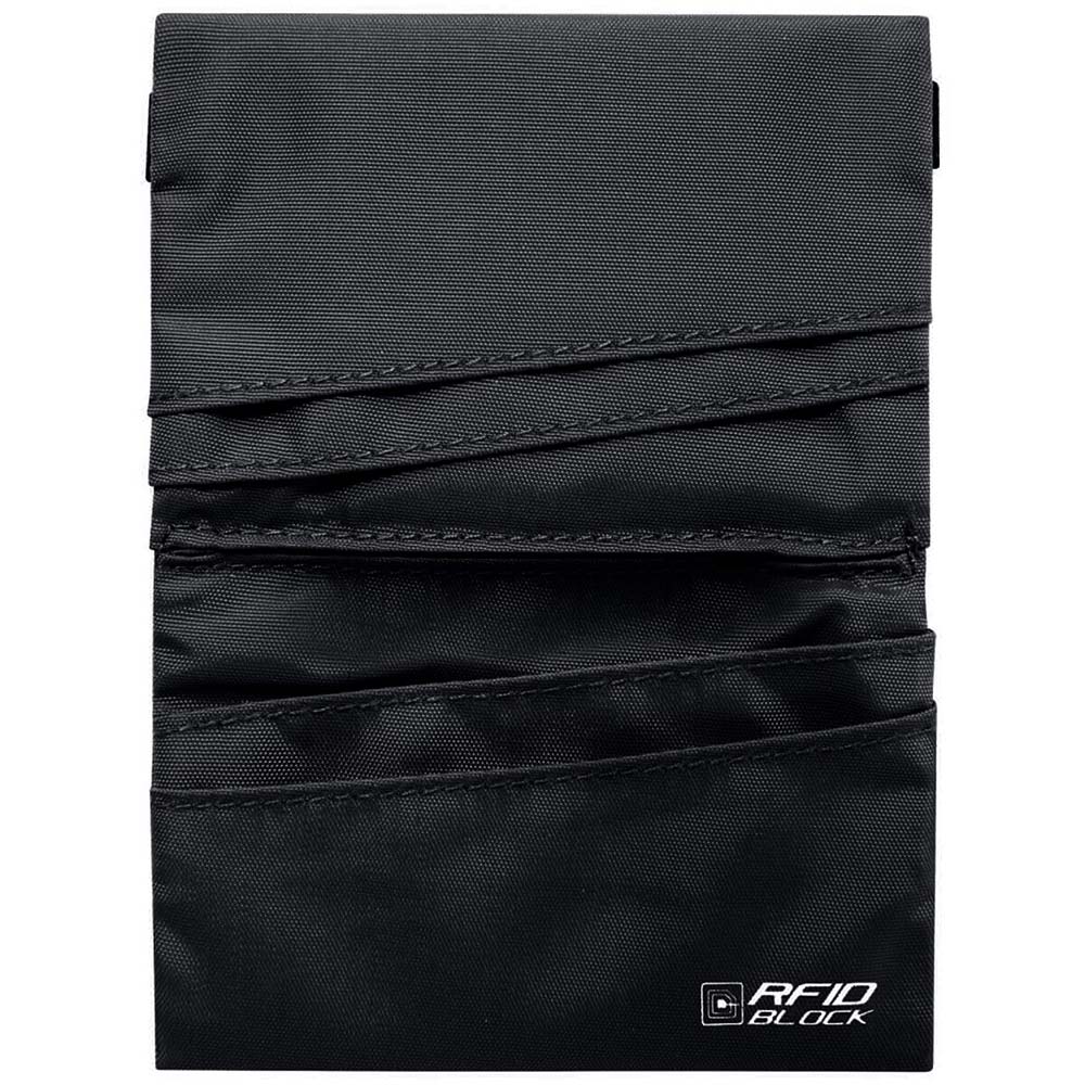 Jednostavan, perolak crni novčanik za kartice opremljen RFID zaštitom koja štiti kartice i biometrijske dokumente od neovlaštenih čitača.