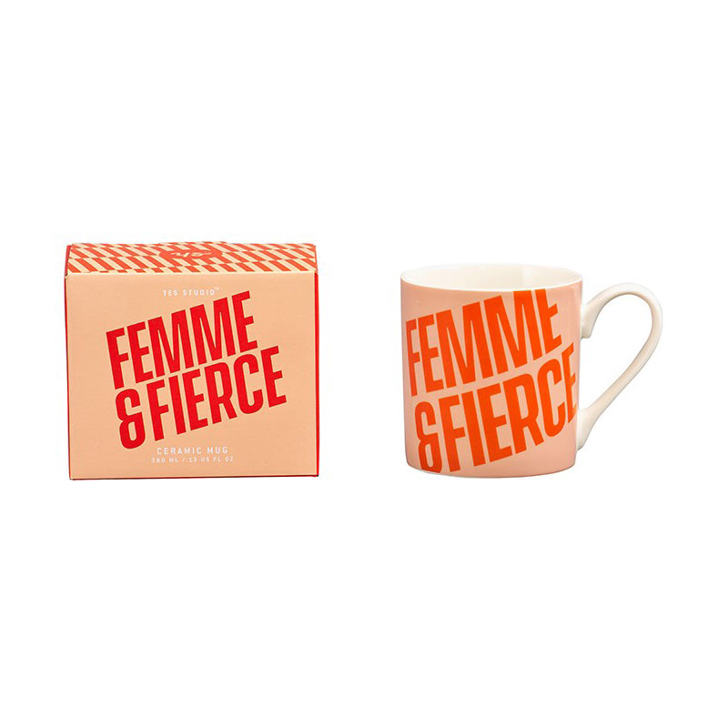 Jednostavna šalica upečatljivog natpisa „Femme & Fierce” idealna je za sve junakinje modernog doba.