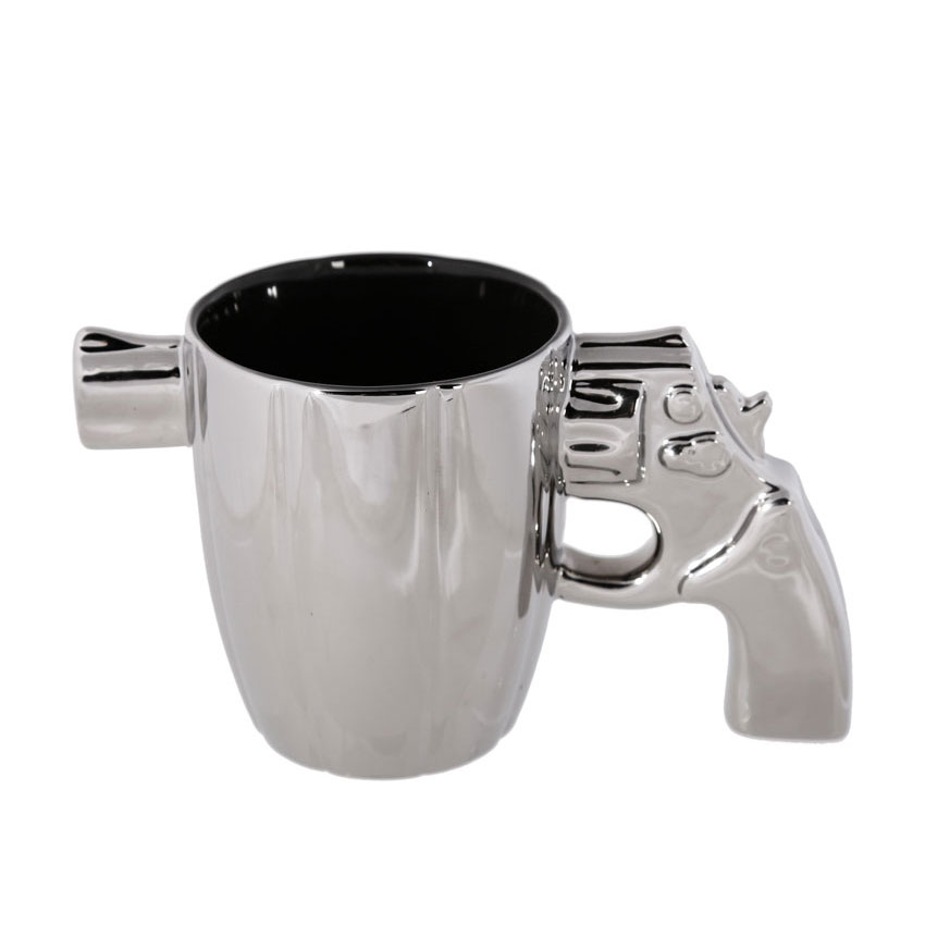 Cool šalica s metalik efektom kojoj je drška oblikovana poput revolvera.