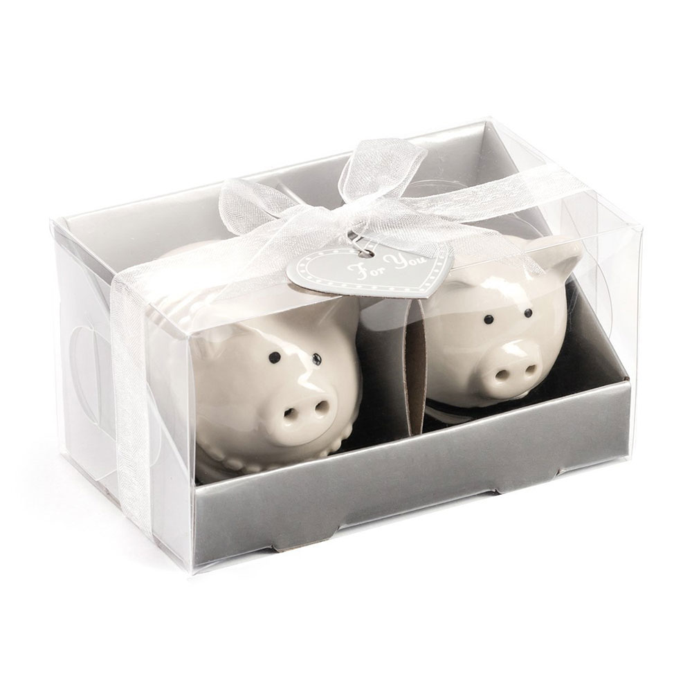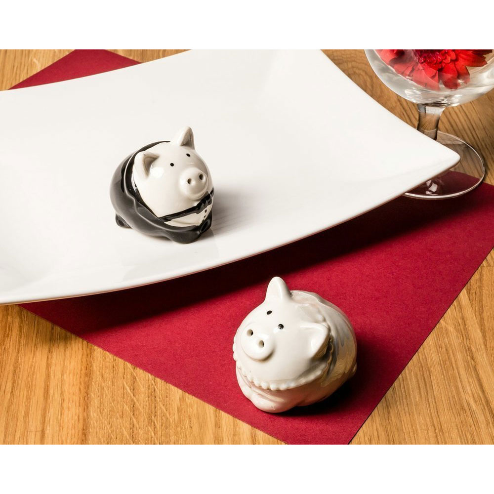 Soljenka i paprenka oblikovane poput praščića na vjenčanju dolaze u lijepom poklon pakiranju s mašnom.