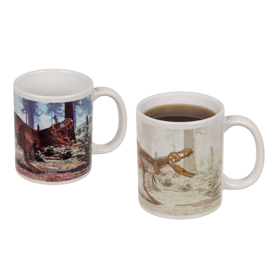 Odlična šalica koja prikazuje dinosaura – uljevanjem vruće tekućine realistična slika dinosaura prelazi u prikaz kostura!